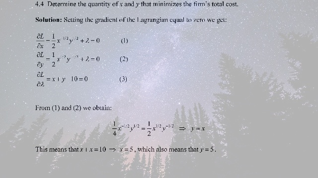 4.4 Determine the quantity of x and y that minimizes the firm’s total cost.