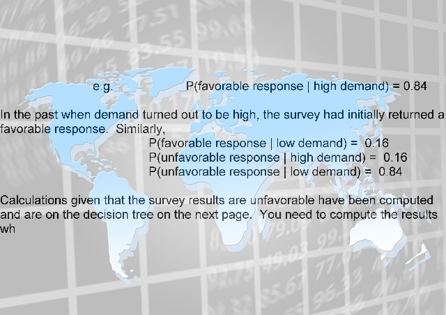 For a fee, the company in problem (5) can have a market research firm conduct a survey of consumer attitudes toward their bagels. Based upon past examination of 100 similar surveys, the conditional probabilities given the two possible demands are presented in the following table: