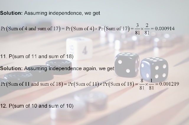 Suppose two nine-sided dice are rolled. Make a chart of the sample space and then find the following probabilities.