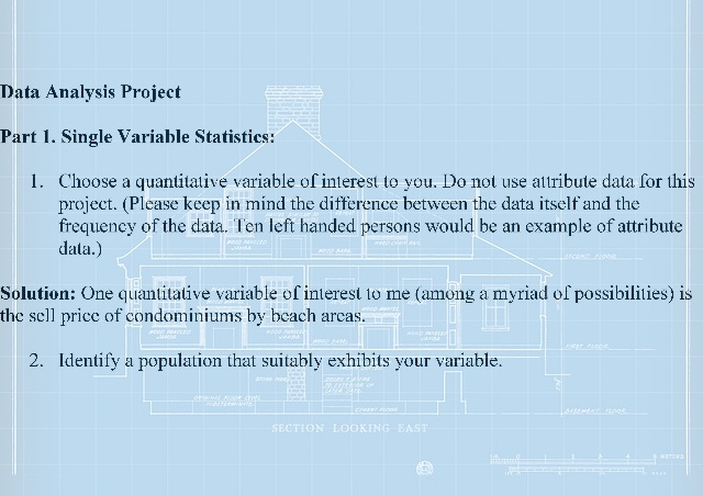 - Choose a quantitative variable of interest to you. Do not use attribute data for this project. (Please keep in mind the difference between the data itself and the frequency of the data. Ten left handed persons would be an example of attribute data.)