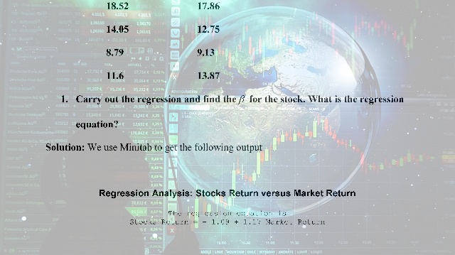 - Carry out the regression and find the \(\beta \) for the stock. What is the regression equation?