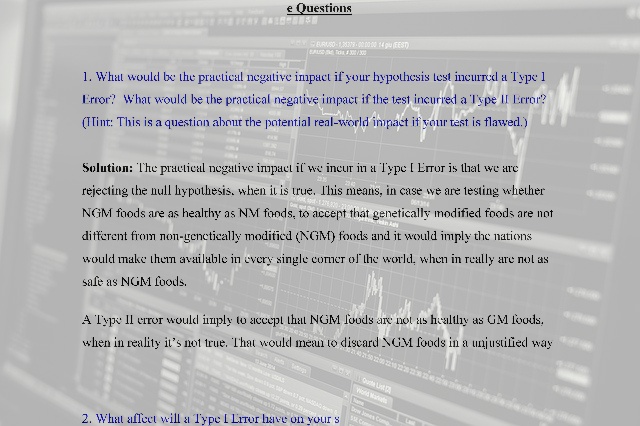 1. What would be the practical negative impact if your hypothesis test incurred a Type I Error? What would be the practical negative impact if the test incurred a Type II Error?
