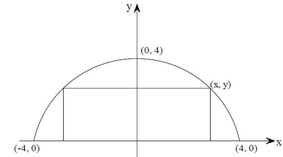 Question: Find the dimensions of the rectangle of greatest area with base on the x-axis and its other two vertices above the x-axis on \(4y=16-{{x}^{2}}\).
