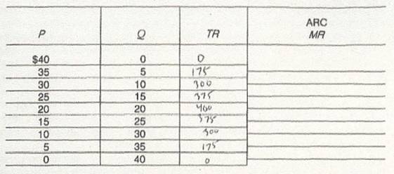 (a) Complete the table by finding total revenue and arc marginal revenue.