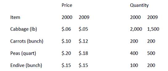 c. Compute the Laspeyres price index for 2009 using 2000 as the base period. (2)