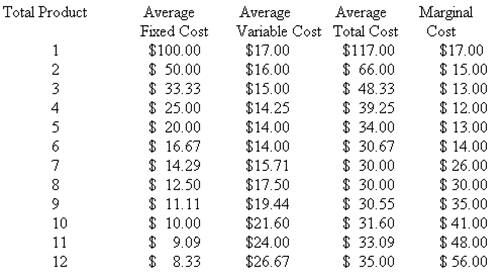 Answer the following question using the following cost data for a firm that is selling in a purely c