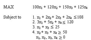 The linear programming problem whose output follows is used to determine how many bottles of fire re