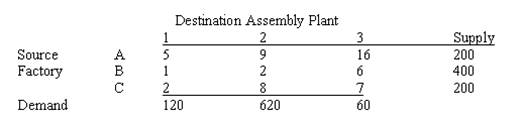 Question: A logistics specialist for Wiethoff Inc. must distribute cases of parts from 3 factories to 3 assembly plants. The monthly supplies and demands, along with the per-case transportation costs are: