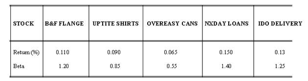 Question: The Howe, Thieu, Cheathem and Dew Problem. Joachim N. Walkout is the investment counselor at the Howe, Thieu, Cheathem and Dew Investment Company. Joachim is in the process of setting up an investment scheme for a group of impoverished distant learning operations research professors. Five stocks have been identified as having very favorable expectations for the near term. Although expected return is important, risk must also be considered. Typically risk is measured by the beta factor that is used in the capital asset pricing model developed by Nobel laureate William Sharp of Stanford. A beta of 1.00 means that a company is matching the risk of the entire market average. Beta values greater than 1.00 indicates that the stock has a relatively high risk. Beta values of less than 1.0 indicate stocks that are safer than the average of the market. The expected near term returns and the latest beta calculations for the five stocks that Joachim has identified are as follows: