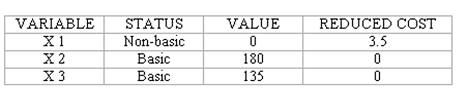 Use the following computer output to find the optimum mix of products in terms of maximizing contributions to profits for the next period.