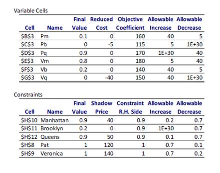 b. Consulting the sensitivity report below, determine the optimal number of weeks that each salesperson will spend selling in each borough next year. What is the optimal annual net profit? (It might be helpful to first fill in the blanks in the following table)