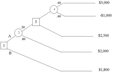 Consider the following decision tree. Which decision, A or B, is best? What is the expected value