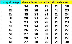A researcher tested a drug capable of inhibiting adrenaline release vs. stress level as shown in the