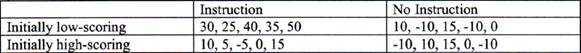 Question: Ten students who initially scored low on the verbal portion of the SAT and 10 who initially scored high are randomly assigned to instruction and no instruction groups. Their gain scores (how much they improved in their SAT verbal score) appear below. Perform the appropriate analysis using SPSS. Please write up the results as you would in a scientific paper. For any significant main effects, please report the effect size. Please turn in the relevant portions of your SPSS output. (12 points)