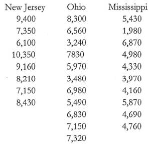 Question: Suppose a survey of current expenditures per pupil (average daily attendance) in the year 2000 in a number of school districts in three states reveals the following data.
