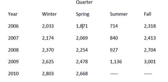 d. Forecast the 2011 enrollment for each quarter. (3)