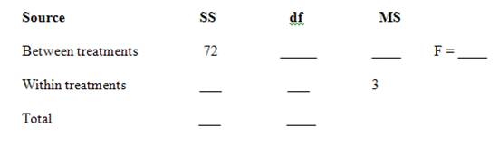 Question: A common science-fair project involves testing the effects of music on the growth of plants. For one of these projects, a sample of 40 newly sprouted bean plants is obtained. These plants are randomly assigned to four treatments, with n= 10 in each group. The four conditions are rock, heavy metal, country and classical music. The dependent variable is the height of each plant after 2 weeks. The data from this experiment were examined using an ANOVA, and the results are summarized in the following table. Fill in all missing values.