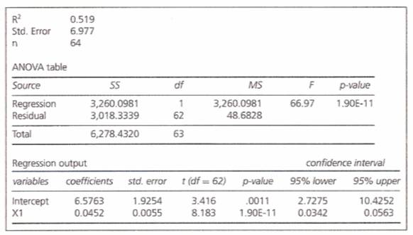 that F = t 2 for the slope. (f) In your own words, describe the fit of this regression.