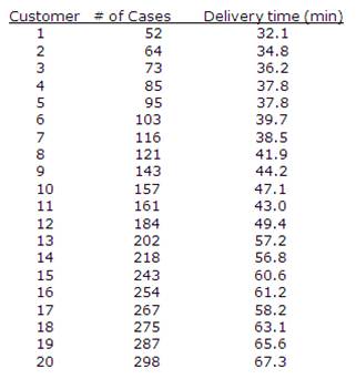 Question: Management of a soft-drink bottling company wants to develop a method for allocation delivery costs to customers. Although one cost clearly relates to travel time within a particular route, another variable cost reflects the time required to unload the cases of soft drink at the delivery point. A sample of 20 deliveries within a territory
