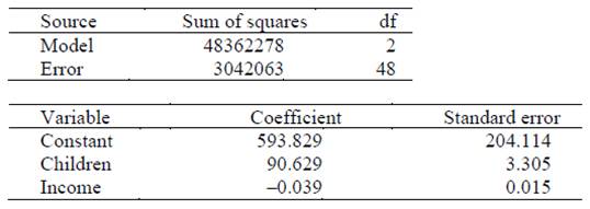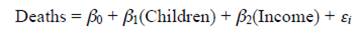 d) What proportion of the variation in the variable deaths is explained by the explanatory variables children and income? Explain.