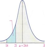 = 3.2 miles per gallon. The area under the curve between 18 and 21 is 0.1107. Provide two interpretations of this area.