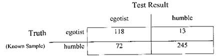 Question: You have developed the Bozo Egotism Scale (RES) which determines which doctors and hospital administrators are egotists. You test the BES against a known sample of doctors and administrators to sec how accurate your test is. Here is the resulting contingency table.