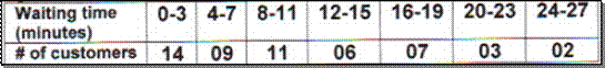 Question: The manager of a Mid-First Bank branch recorded the amount of time each customer spent waiting in line during peak business hours one Monday. The frequency table below summarizes the results.