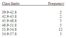 Construct a histogram, a frequency polygram, and an ogive for the data; and comment on the shape of the distribution.