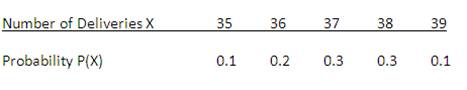 Question: Pizza Deliveries. A pizza shop owner determines the number of pizzas that are delivered each day. Find the mean, the variance, and standard deviation for the distribution shown. If the manager stated that 45 pizzas were delivered on one day, do you think that this is a believable claim?