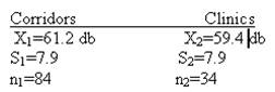 Question: A study of noise levels in hospitals produced the following data. Test the claim that the noise level in the corridors is higher than in the clinics.