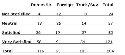 EdCo. Auto Repair did a survery of 284 customers regarding statisfaction with service and type of ca