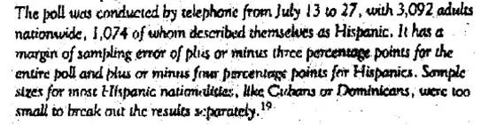 Question: A New York Times news service article on a poll concerned with the opinions of Hispanics includes the following paragraph: