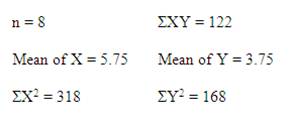 Question: A researcher was interested in finding the relationship between anxiety (X) and performance on a cognitive task (Y). The following summary results were obtained on a sample.