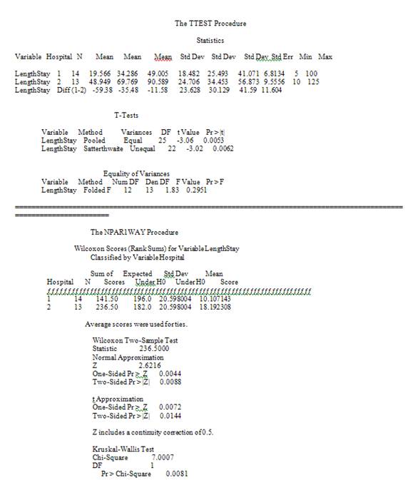 Question: Suppose we wish to compare the length of stay in the hospital for patients at two different hospitals with the same diagnosis. Suppose the data was as follows: