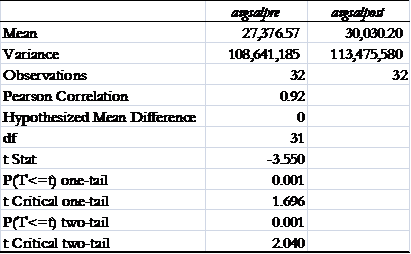 Question: Like many states, the State of Michigan provides grants that firms use to pay for training their employees. These are called incumbent worker training grants. The output below comes from a sample of 32 firms who received the training grants. You want to see whether there was a statistically significant increase in average salary at these firms. “avgsalpre” is the average salary the year before the training was done and “avgsalpost” is the average salary the year after the training was done. Both salary figures are in current dollars.