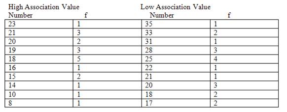 \[s = \sqrt{13.7342}={3.706}\]Low Association Value
