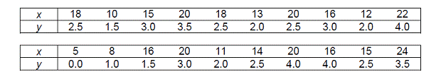 Question: The scores (x) on a computer science aptitude test range from 0 to 25, and the course grade (y) with possible values: 0.0, 1.0, 1.5, 2.0, 2.5, 3.0, 3.5, 4.0, were recorded for 20 students in an introductory computer science course as shown below.