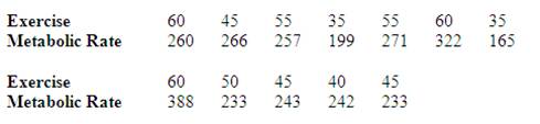 Question: One benefit of exercise is that it raises an individual’s metabolic rate. In a study to determine the effect of duration of exercise on the metabolic rate, a sample of 12 regular exercisers was drawn. The amount of time each individual exercised and the metabolic rate 1 hour after the exercise were measured. The data are listed here:
