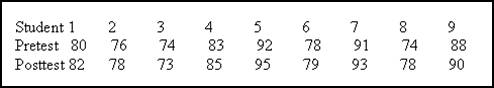 An educator designed a reasoning skills course. 9 students were selected and given a pretest to the