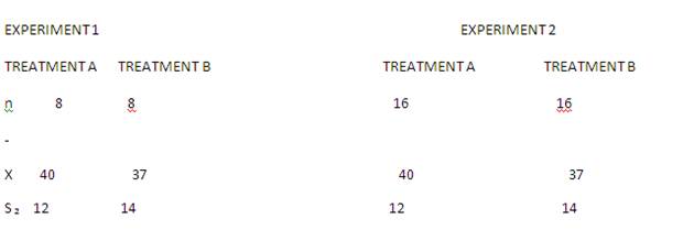 Question: A researcher has done a series of experiments to determine whether there is any significant difference between two treatments. The data from these two experiments are as follows: