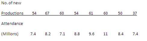 Question: Broadway Productions. A researcher wants to see if there is a relationship between the number of new productions on Broadway in any given year and the attendance for the season. The data below were recorded for a selected number of years. Based on these data, can you conclude a relationship between the number of new productions in a season and the attendance?