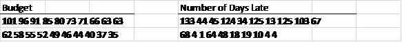 Question: State Budget and Days Late New York State has become notorious for approving the state budget after the annual deadline April 1. The amounts of the budget (in billions of dollars adjusted for inflation) and the number of days late are listed below with corresponding entries representing the same year. (The data are in order by row.)