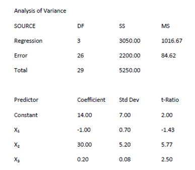 c. Conduct a global test of hypothesis to determine whether any of the regression coefficients are not equal to zero using a .05 level of significance. (3)