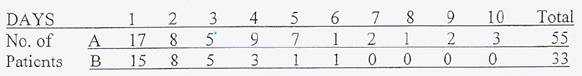 Question: The effectiveness of two antibiotics, A and B, for treating patients with pneumonia was to be compared. Fifty-five patients were given antibiotic A and 33 were given antibiotic B. The number of days it took to bring the patients' temperatures down to normal are given below. Compare the effectiveness of the drugs using an appropriate technique.