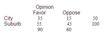 Question: A local county is considering a budget proposal that would allocate extra funding toward the renovation of city parks. A survey is conducted to measure public opinion concerning the proposal. A total of 150 individuals respond to the survey: 50 who live within the city limits and 100 from the surrounding suburbs.