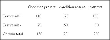 (a) P(+, given condition present); this is known as the sensitivity of a test.