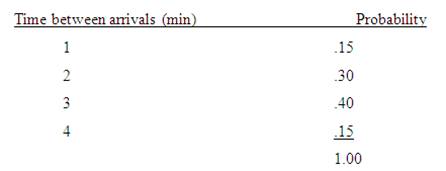 a. Simulate the arrival of cars at the service station for 20 arrivals and compute the average time between arrivals.