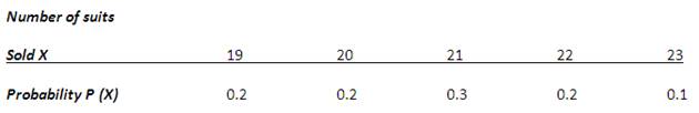 Question: Suit Sales. The number of suits sold per day at a retail store is shown in the table, with the corresponding probabilities. Find the mean, variance, and standard deviation of the distribution.