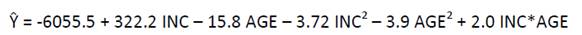 Question: Regression Analysis In trying to find new locations for their restaurants, fast food chains such as McDonald's or Wendy's usually consider a number of factors. A company researcher is developing a model for site selection. Since high sales is the objective in site selection, the dependent variable in an analysis of sites will be annual gross sales. The independent variables will be mean annual household income (INC) and mean age of children (AGE) in the area surrounding the site. Twenty five currently operating sites with approximately 5,000 in population and one major competitor were randomly selected. A complete second-order model was used in the study. The model is of the form: