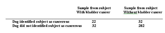 Can Dogs Detect Cancer? An experiment was conducted to test the ability of dogs to detect bladder ca
